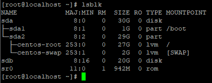 Para a realizar a expansão LVM, acrescentamos um novo disco a maquina (que esta sendo mostrada como “sdb”), depois de conectar o disco na maquina execute o comando echo “- – -” > /sys/class/scsi_host/hostX/scan, onde X é a controladora.