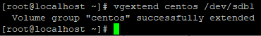 Agora iremos digitar “vgextend “grupo” /dev/sdx” para adicionar o disco ao grupo LVM(digite vgs para listar os grupos disponíveis).