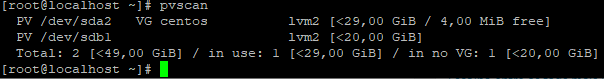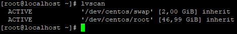digite “lvscan” para verificar se o espaço foi adicionado ao disco.