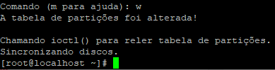 Digite “w” e pressione enter para escrever as mudanças em disco.